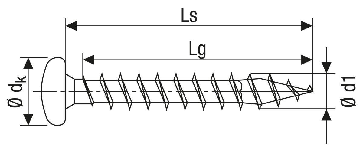 - Halbrundkopf: Flach aufliegender Halbrundkopf