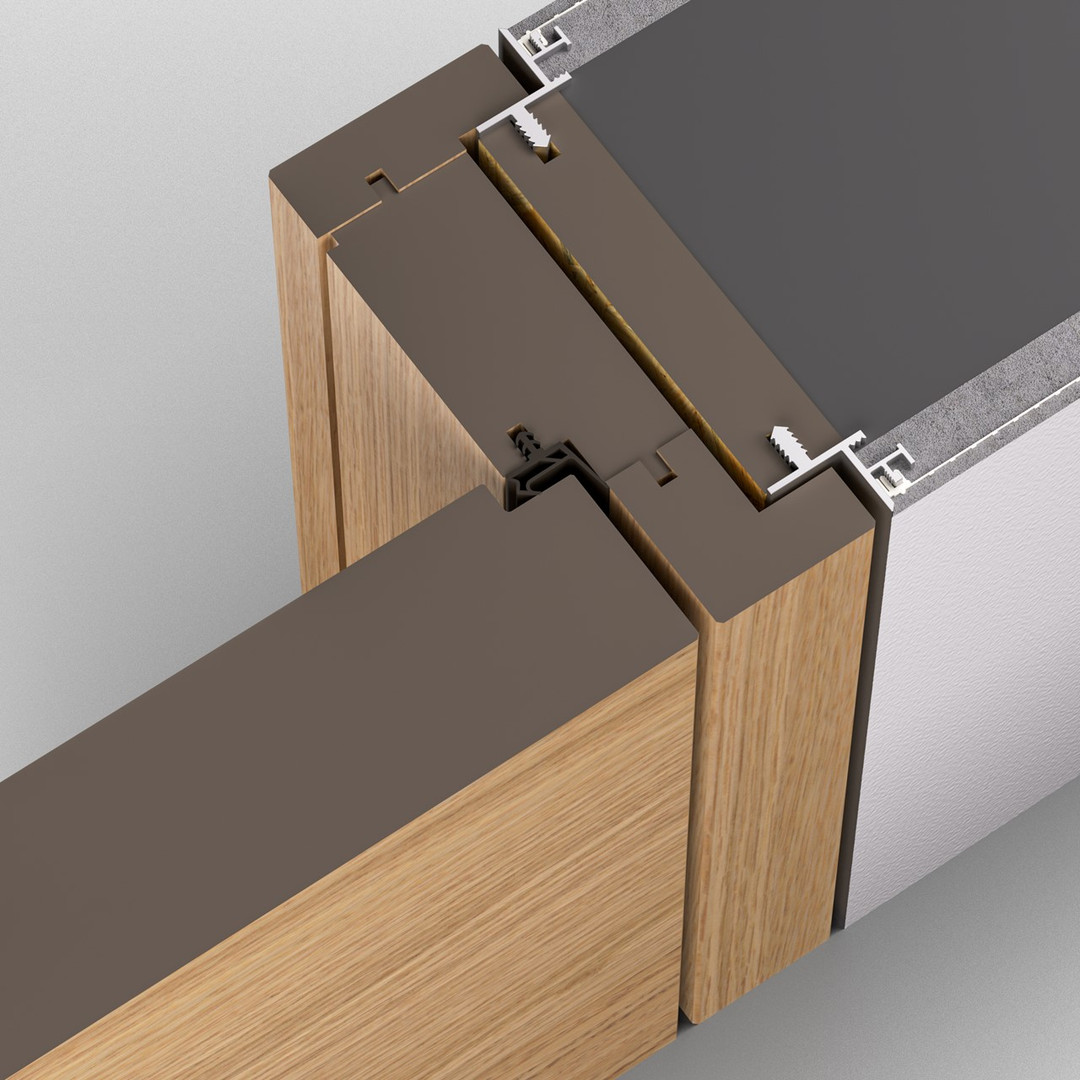 Das Profil wird auf das Blindfutter aufgesteckt und gewährleistet dadurch eine schnelle Montage. Durch die abgeschrägte Kante sind perfekte Kantenausbildungen und filigrane Schattenfugen gewährleistet. Perfekte Putz- und Trockenbauanbindung durch das in das Zargenprofil einklickbare Putznetz. Dadurch entsteht eine feste Verbindung zwischen Türzarge und Mauerwerk/ Trockenbau und verhindert somit Haarrissbildungen. Für Standard- als auch raumhohe Türen.