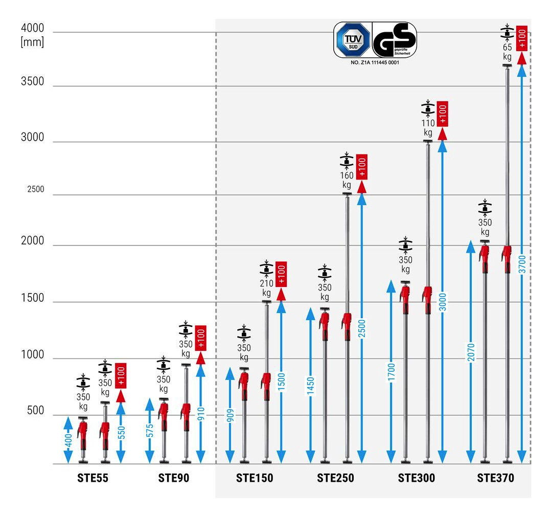 - STE150, STE250, STE300, STE370: GS-zertifiziert für Qualität und Sicherheit