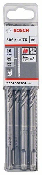 Bosch Professional Hammerbohrer 4-schneidig SDS-Plus 7X - 10,0:165/100mm Vollhartmetalkopf 10er Pak