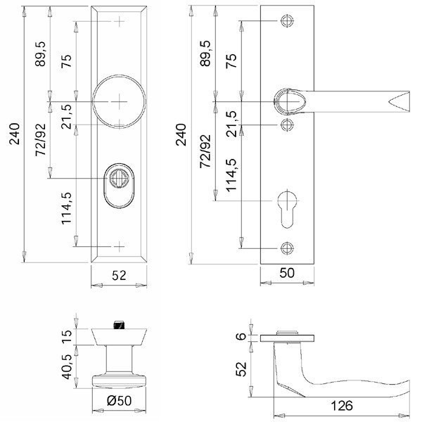 Aluminium Außenschild und Innenschild massiv - DIN 18257 (ES1), Teilstahleinlage im Außenschild 2,0mm, oberflächengehärtet, sichtbare M6 Verschraubung innen. Rollenwechselstift mit M12-Gewinde.