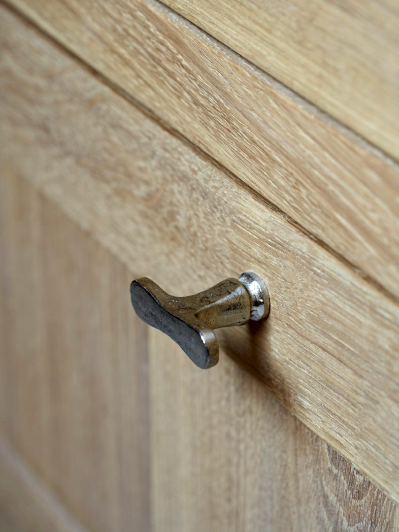 Auch Schmetterling genannt, in zwei Größen sowie in Griffform erhältlich. Ein sehr schlichtes Modell, obgleich die Form größere Fantasie aufweist. Eine zu jedem Stil passende Form, sei er verspielt ländlich oder streng modern. Entdecken Sie auch die dazu passenden Türen- und Fensterbeschläge. Diese Möbelknöpf ist verfügbar in 2 verschiedene Abmessungen. (PBU37 - PBU45)