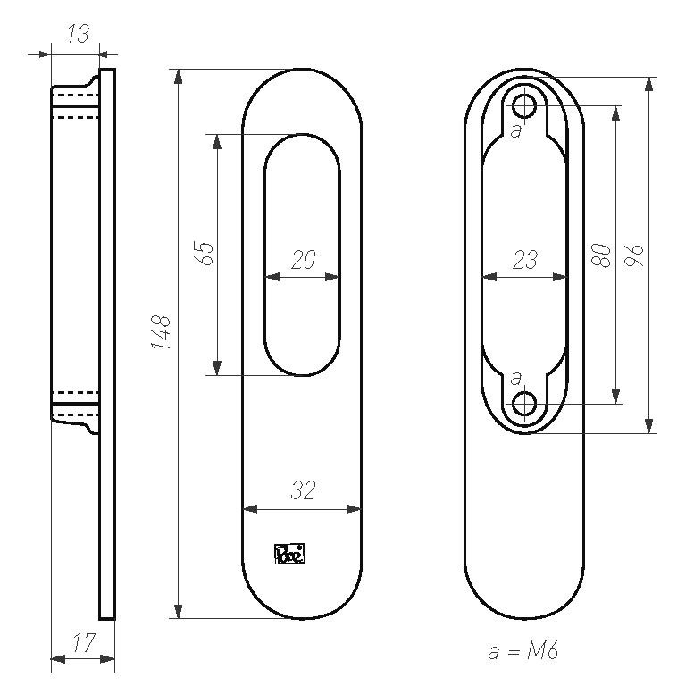 Dauby Schiebetürgriff "BACKPLATE PSLD" - 30x150x13mm - Dunkel-Eisen Schwarz (VO)