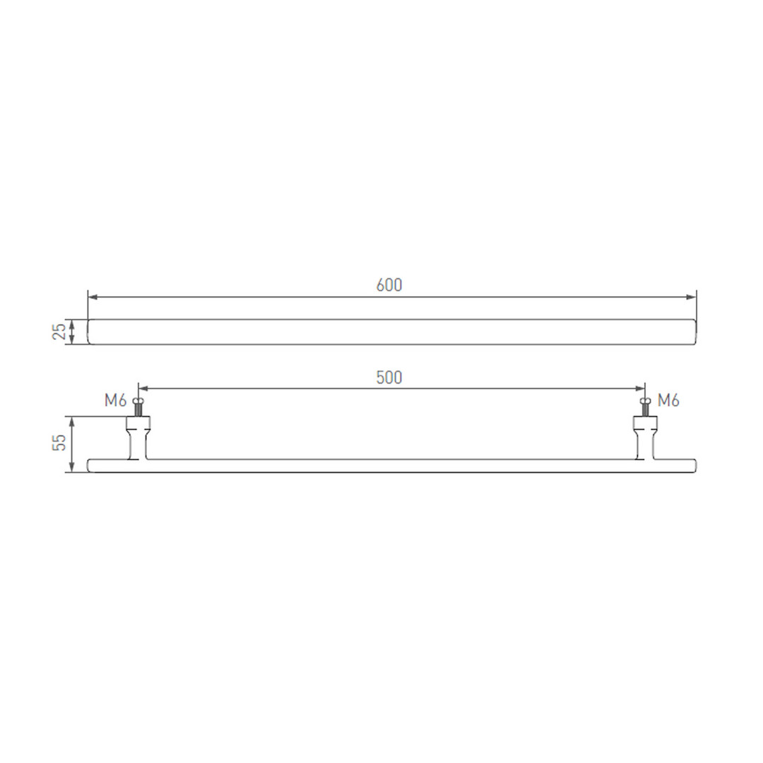 Dauby Stoßgriff "PMEL 600" - 600mm - Rohes Metall (RM)