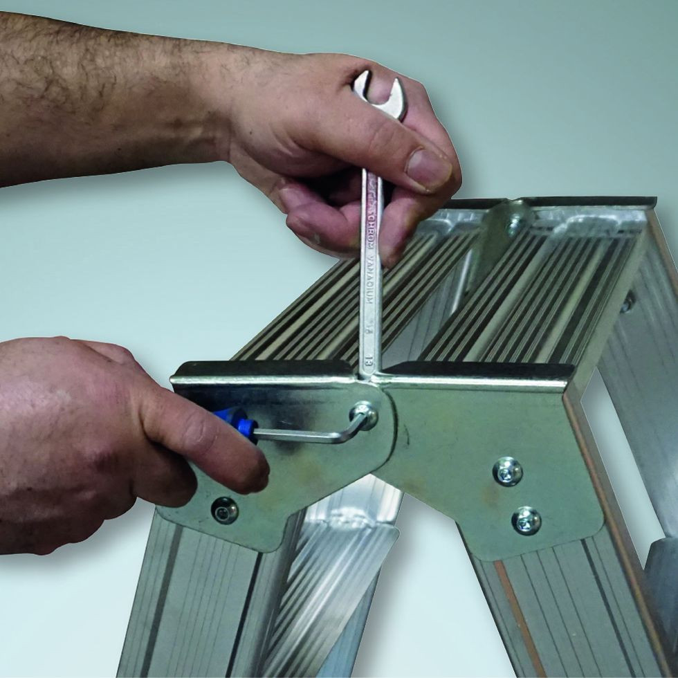 - Premium-Gummifuß mit Abstandsnocke und größerer Auflagefläche für einen sicheren Stand und zur Verhinderung von Holmbeschädigungen beim Zusammenklappen der Leiter