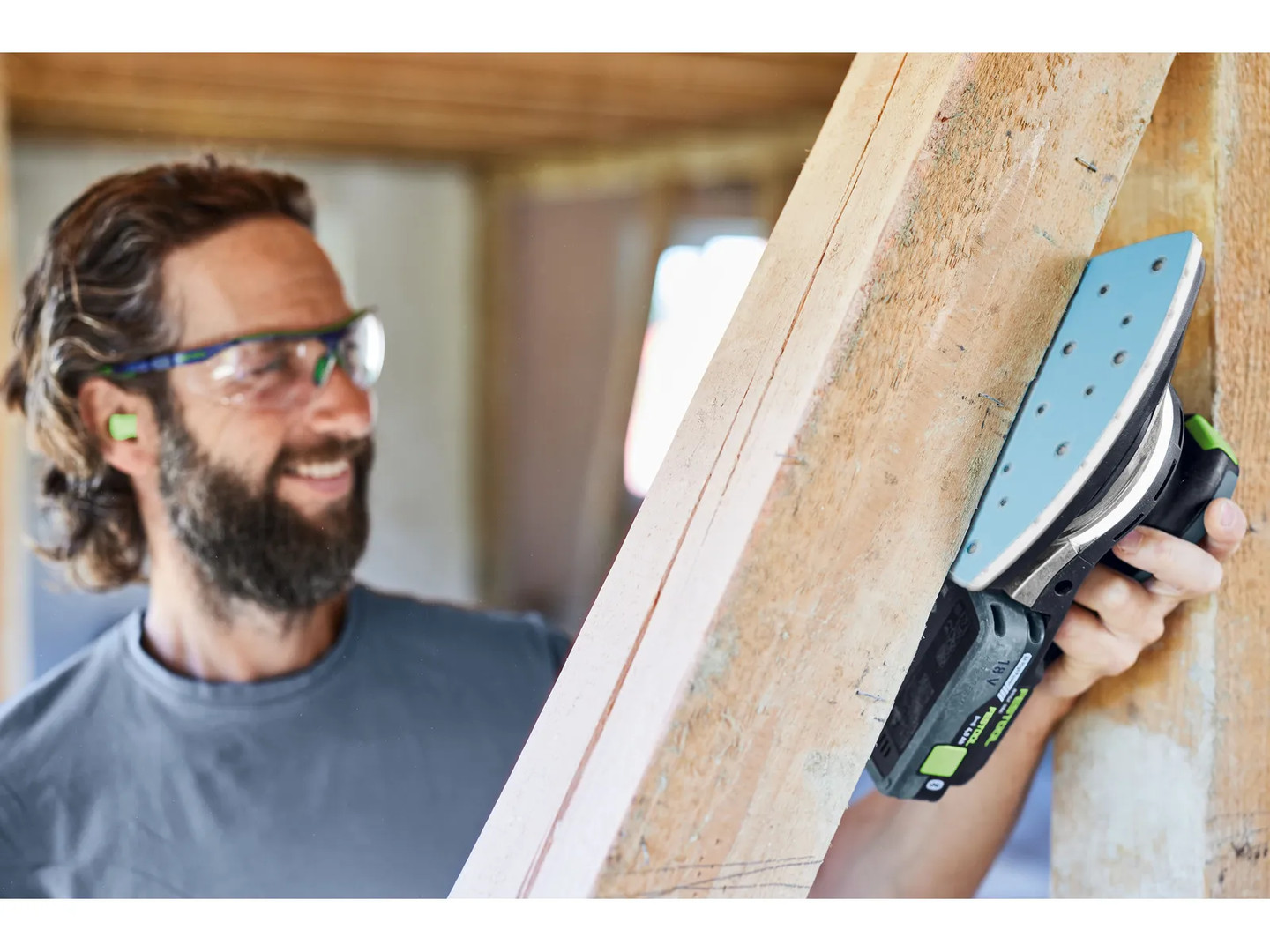 - Licht an: Akkubetriebener Einhand-Deltaschleifer mit integriertem Lichtring