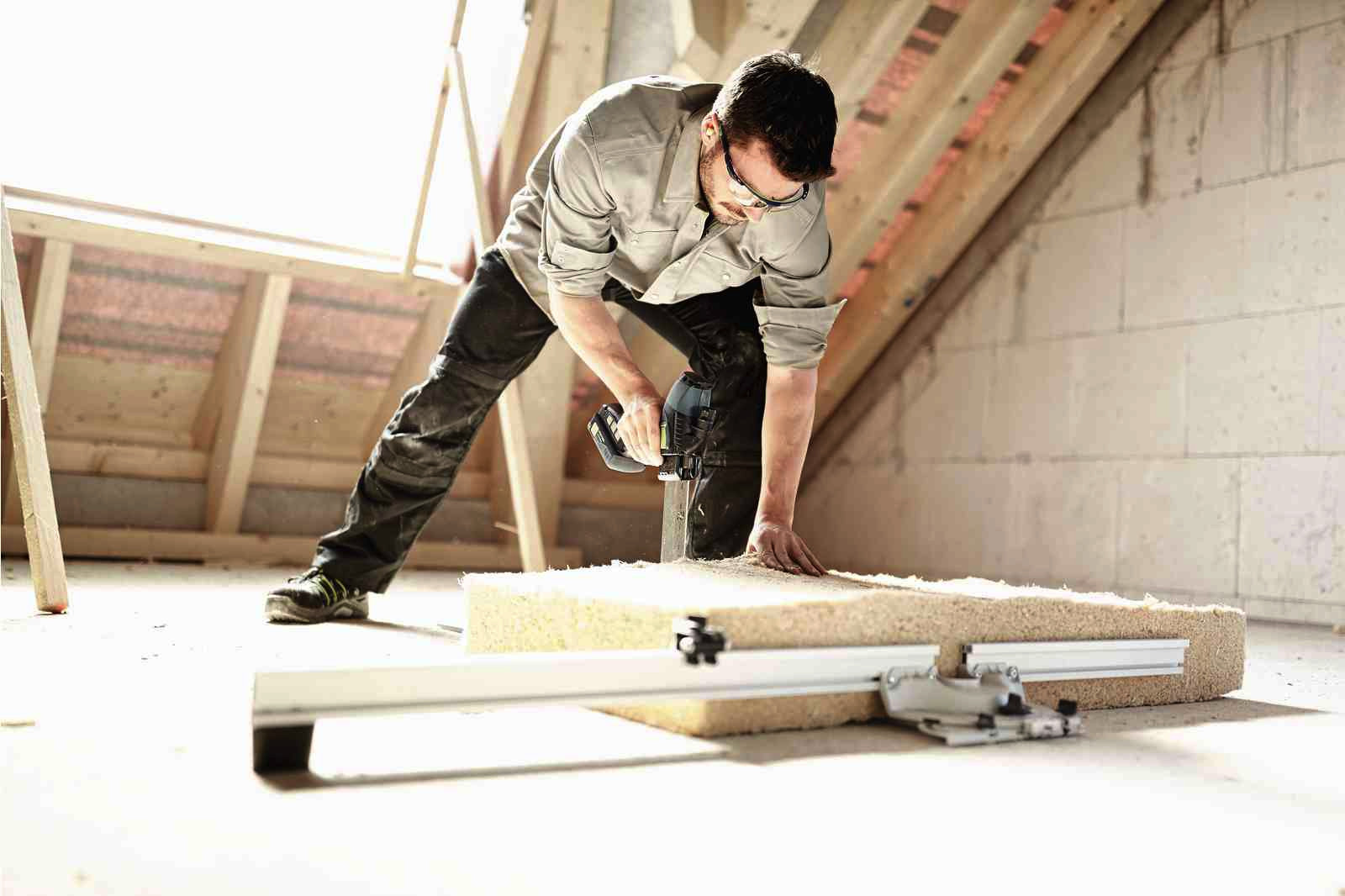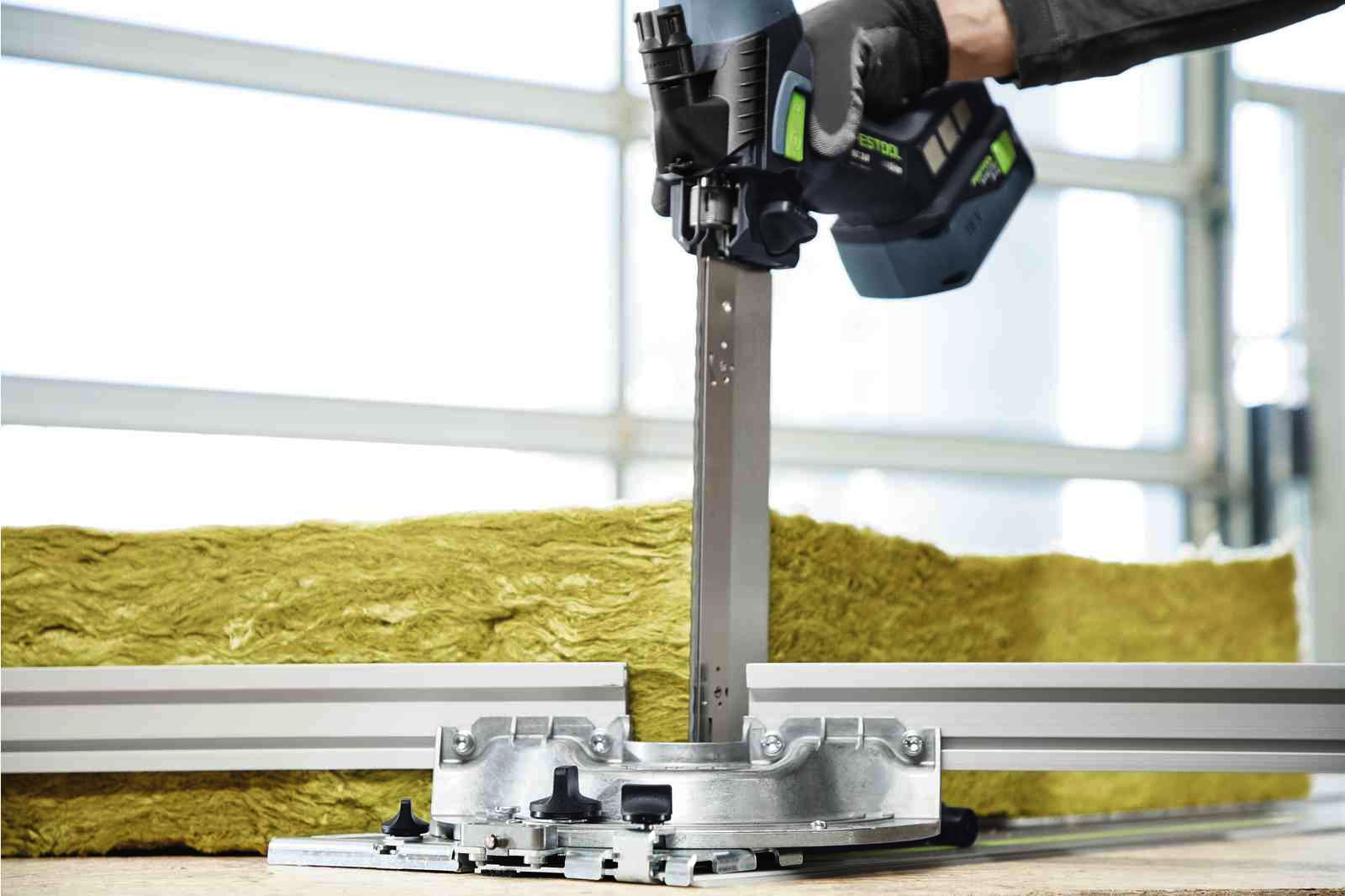 - Winkelgenauer und maßgenauer Zuschnitt von flexiblen Dämmstoffen - in Kombination mit der Führungsschiene und dem Winkelanschlag FS-WA-ISC