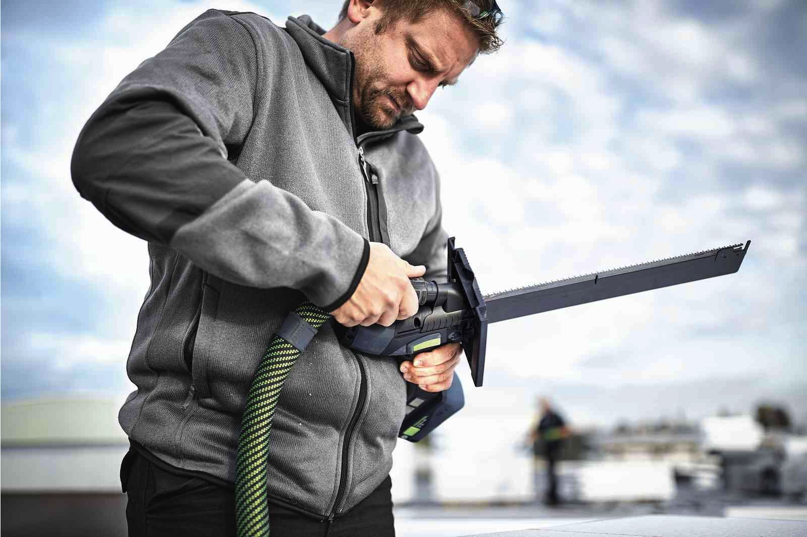 - Selbst dickste Dämmstoffe mühelos zuschneiden: Dank Schneidgarnitur für Schnitttiefen bis 350 mm