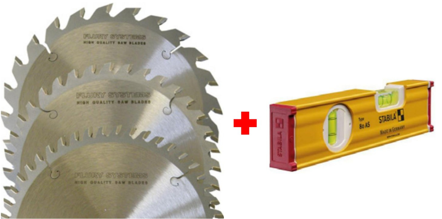 FLURY 3-tlg. Kreissägeblätterset *Aktion* - 160x20mm inklusive 20cm Stabila Wasserwaage