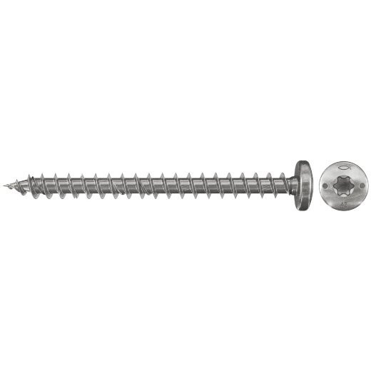 Die fischer Power-Fast FPF-PT A2F aus Edelstahl A2 ist eine Schraube mit Vollgewinde und Innenstern-Aufnahme. Sie kann im Außenbereich und auch in Feuchträumen eingesetzt werden. Mit dem Halbrundkopf eignet sie sich für Verbindungen von Metall auf Holz, beispielsweise bei der Befestigung von Metallbeschlägen, Winkeln oder Balkenschuhen.
