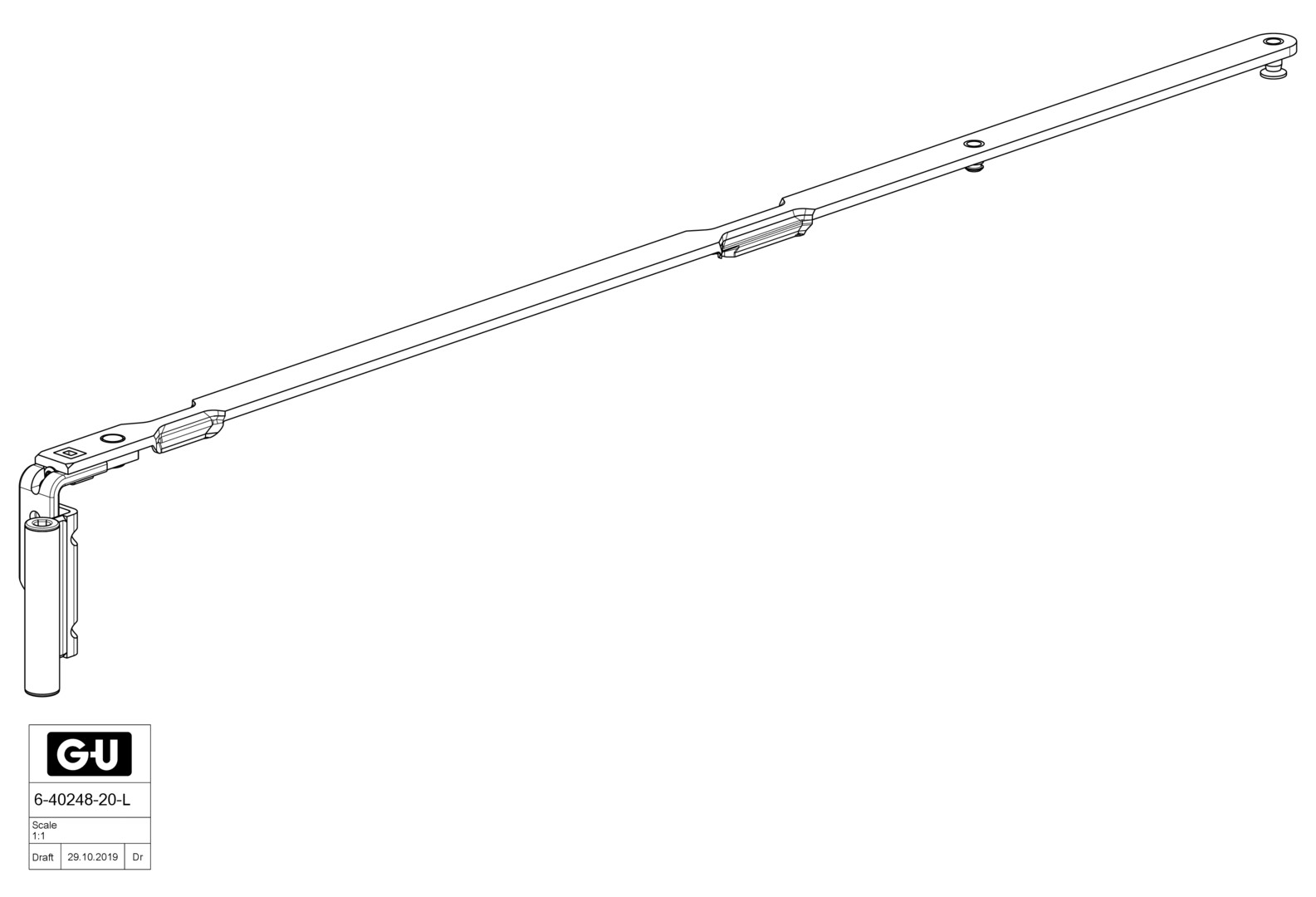 GU UNI-Jet D Scherenarm für KF mit Band - NL 13 - FFB 1201-1600mm - Links