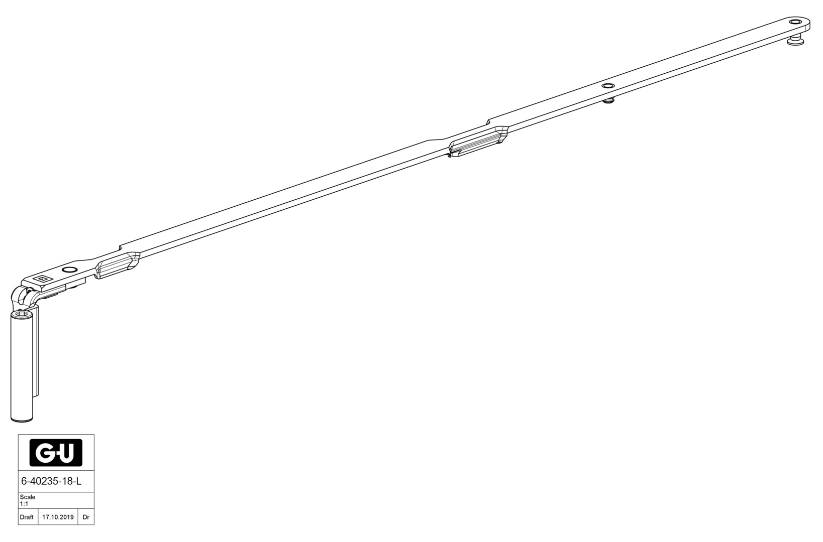 GU Uni-Jet M6 Scherenarm für Holz mit Band - NL 9 - FFB 1201-1600mm - Links