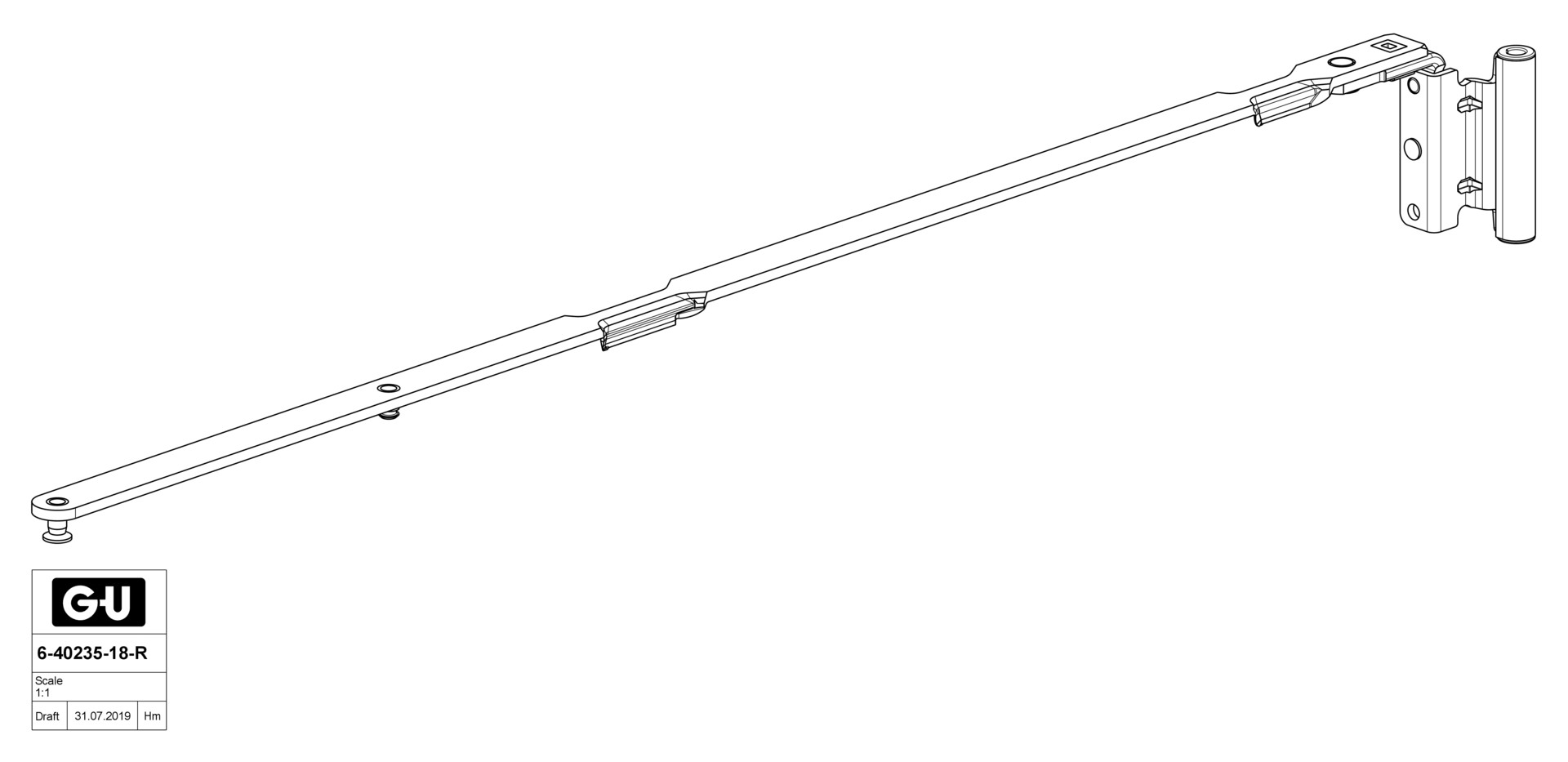 GU Uni-Jet M6 Scherenarm für Holz mit Band - NL 9 - FFB 1201-1600mm - Rechts