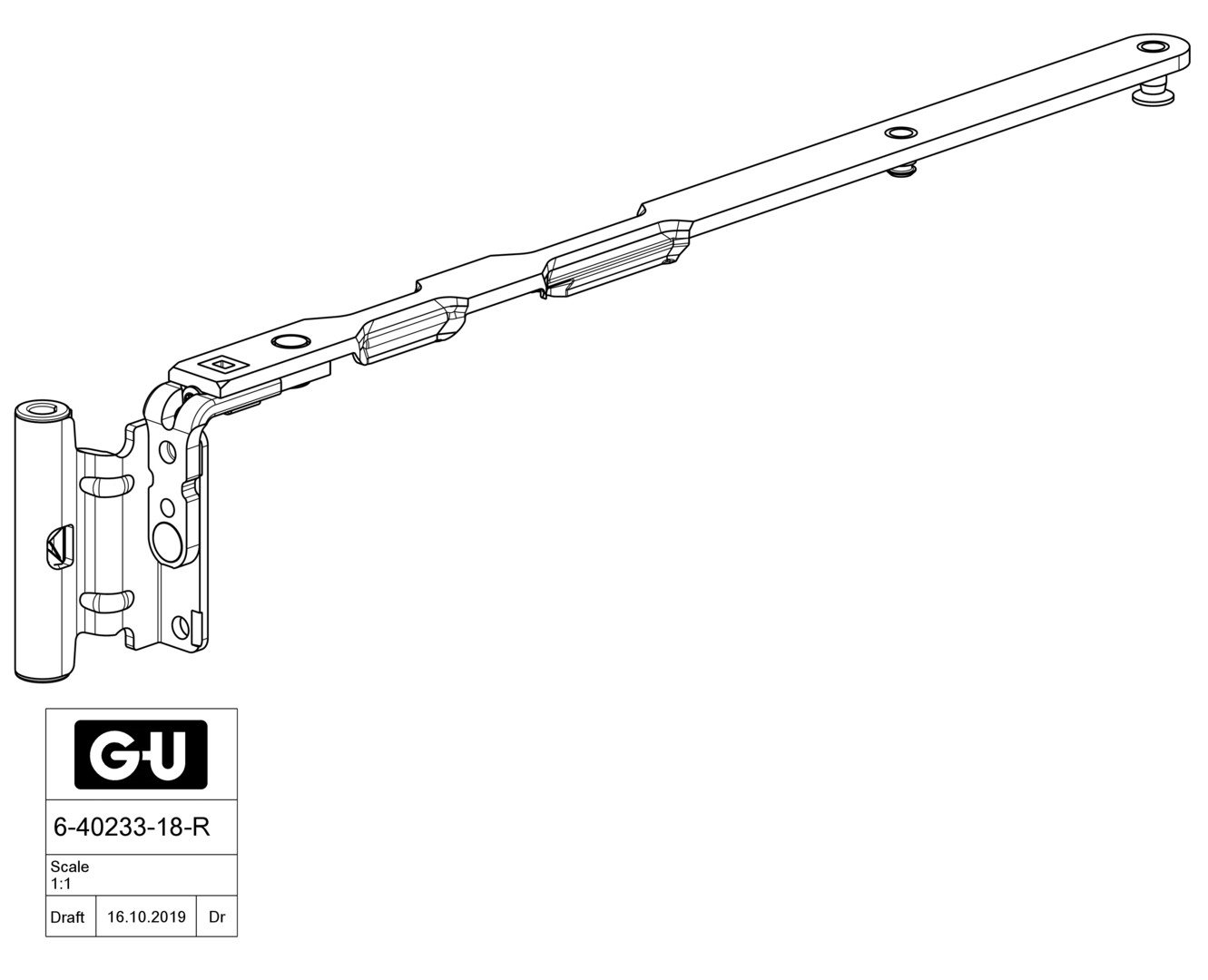 GU Uni-Jet M6 Scherenarm für Holz mit Band - NL 9 - FFB 501-750mm - Rechts