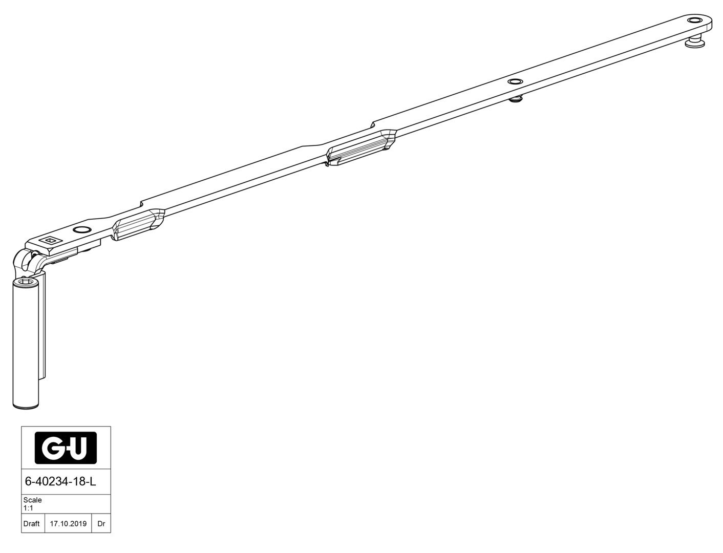 GU Uni-Jet M6 Scherenarm für Holz mit Band - NL 9 - FFB 751-1200mm - Links