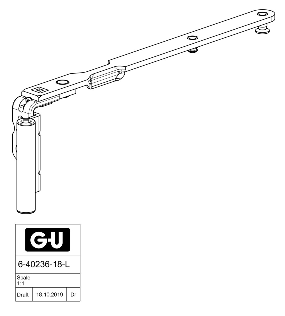 GU Uni-Jet M6 Scherenarm für Holz mit Band - NL13 - FFB 280-500mm - Links