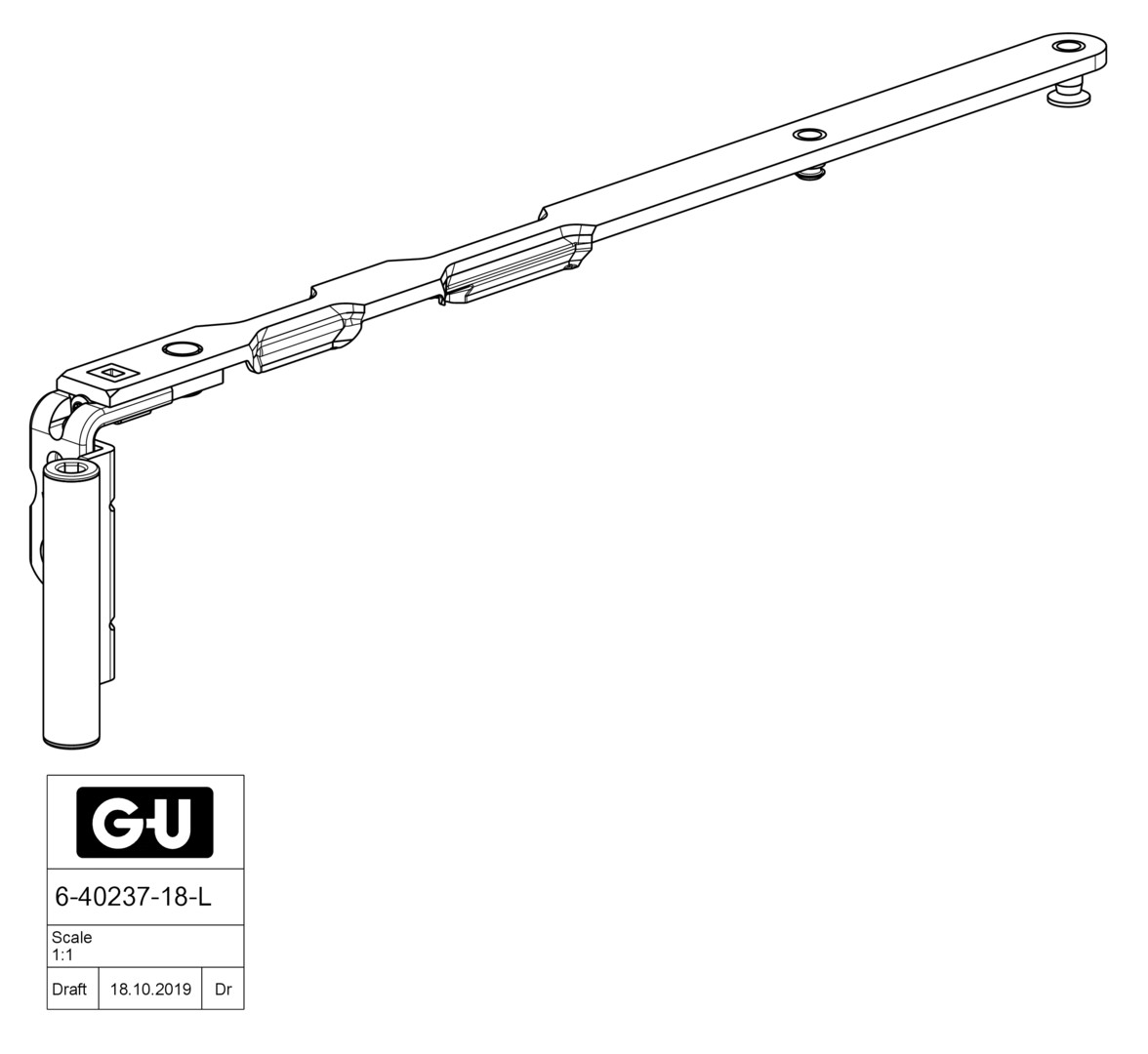 GU Uni-Jet M6 Scherenarm für Holz mit Band - NL13 - FFB 501-750mm - Links
