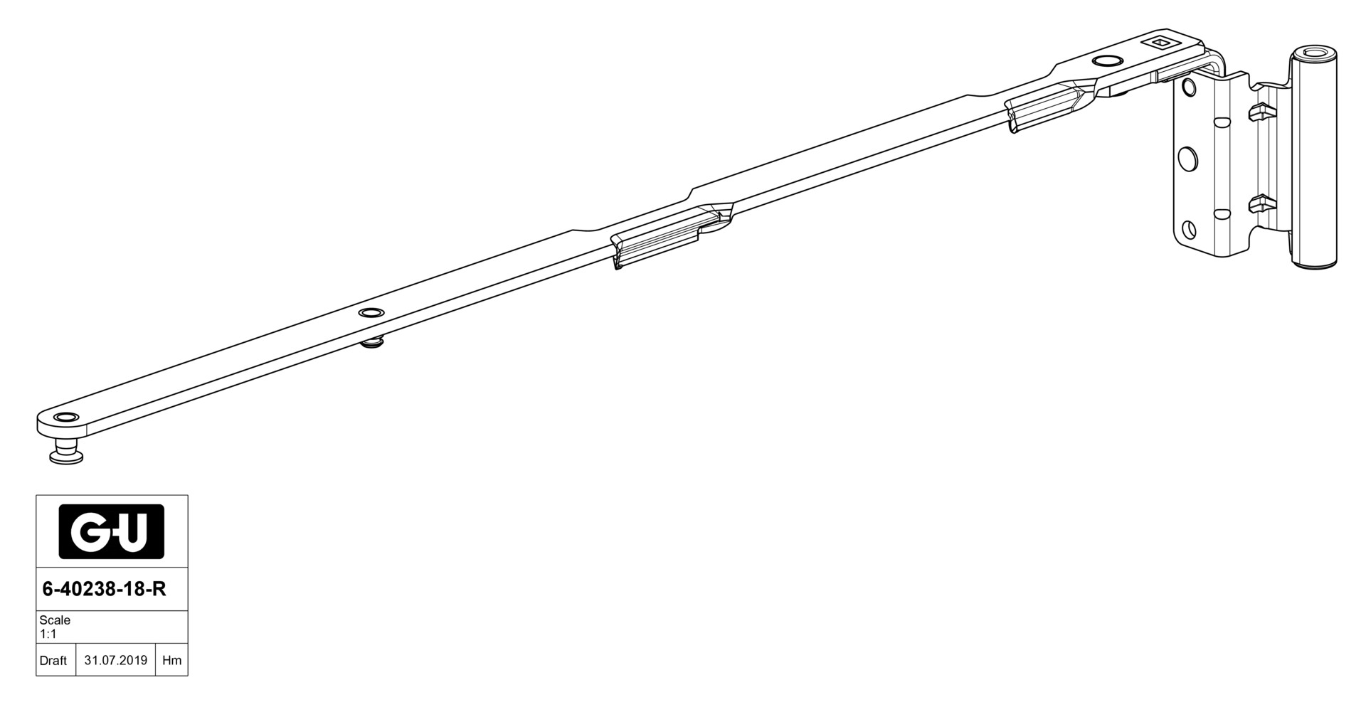 GU Uni-Jet M6 Scherenarm für Holz mit Band - NL13 - FFB 751-1200mm - Rechts