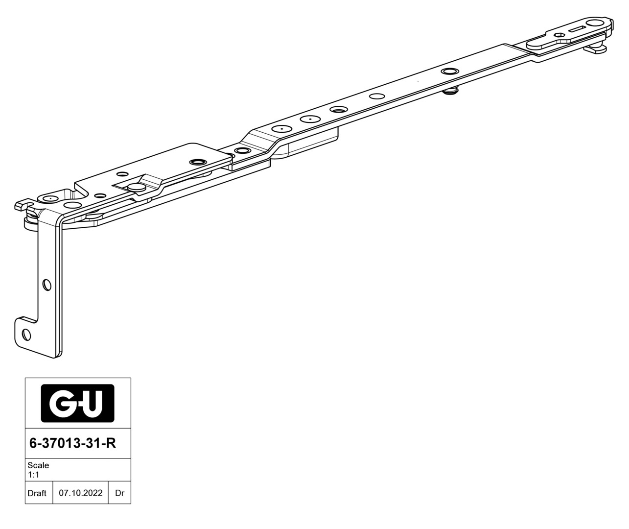 GU SC-F (verdeckt) Scherenarm 24x8mm NL13 FFB 390-750mm re 6-37013-31-R-1