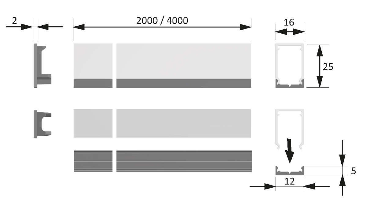 - Aluminium-Einbauprofil mit opaler (transluzenter) Abdeckung