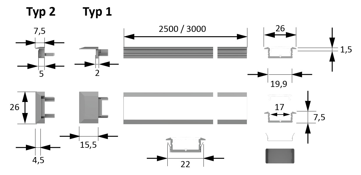• Abdeckung von oben aufsteckbar oder seitlich einschiebbar