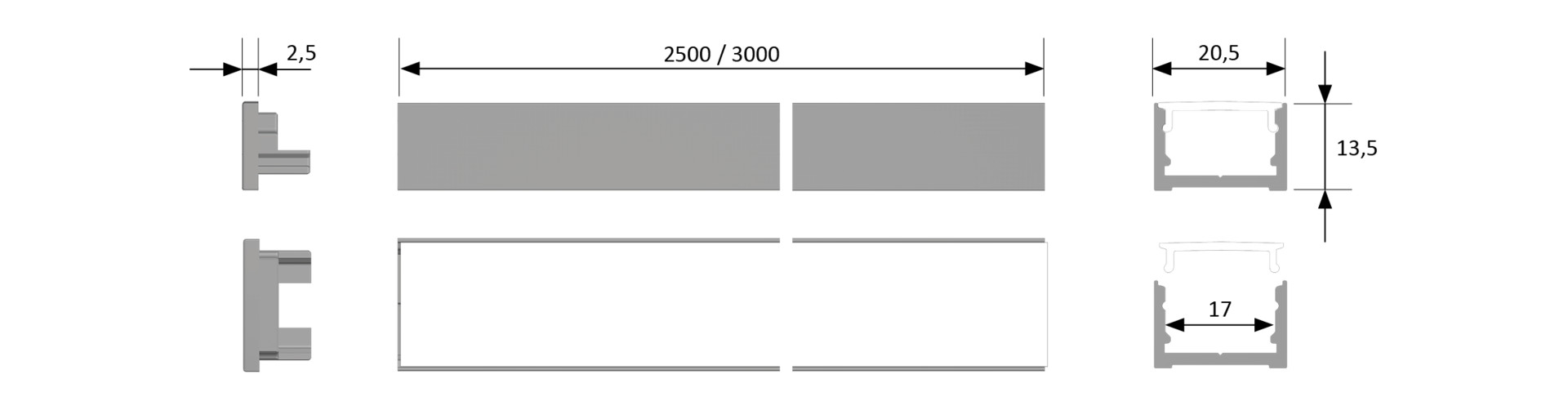 HALEMEIER ChannelLine D2 Alu opal L=2500 Alu- und Abdeckprofil