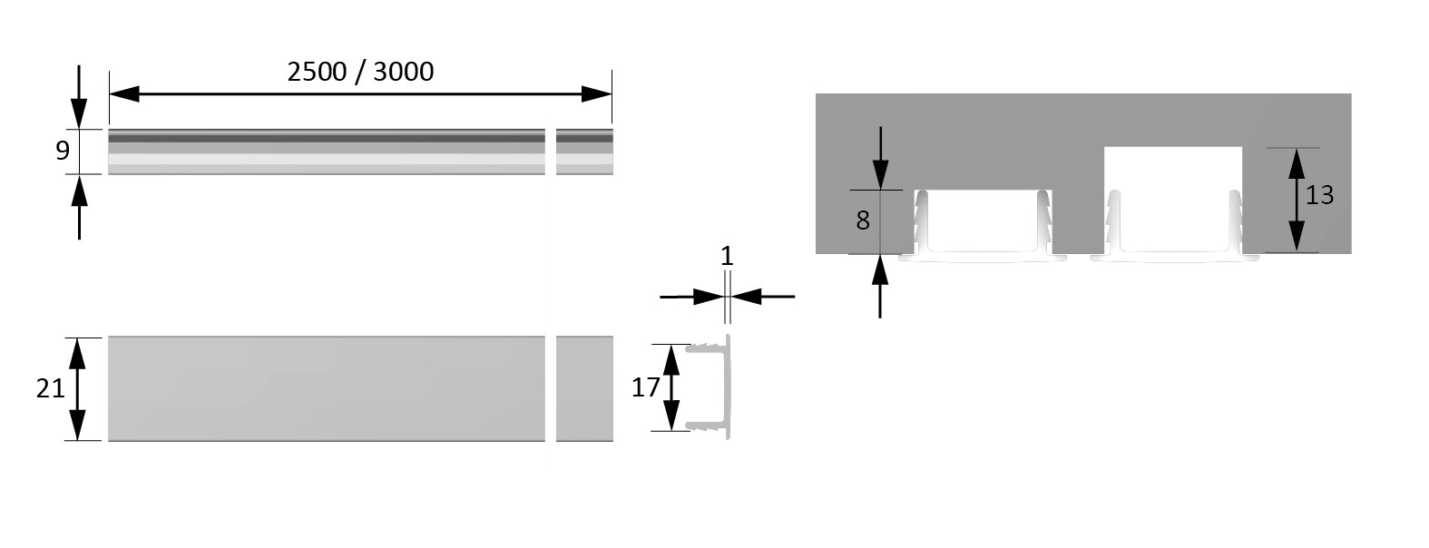 HALEMEIER ChannelLine F opal L=2500 Abdeckprofil