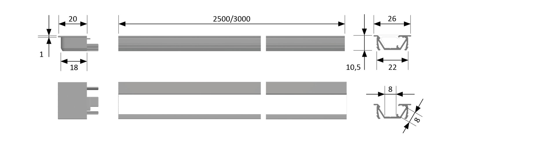 HALEMEIER ChannelLine G2 opal 10er Set L=2500 Alu-und Abdeckprofil