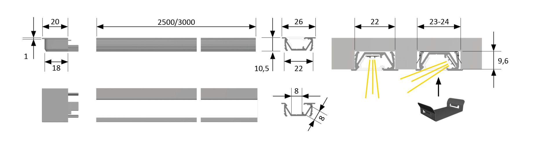 - Homogene Lichtlinie mit Versa ab 120 LED/m