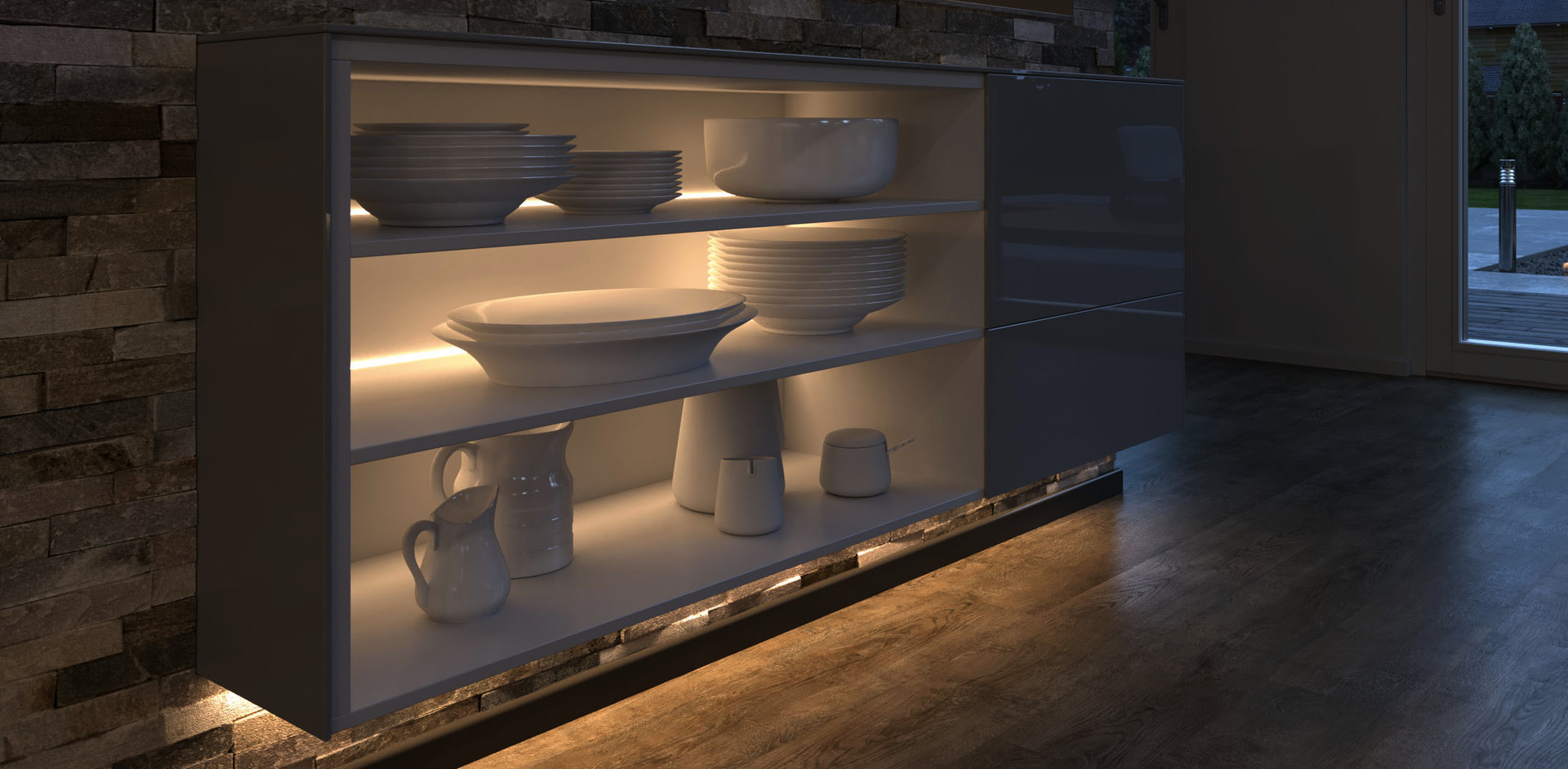 - Rückwandbeleuchtung an Einlegeböden