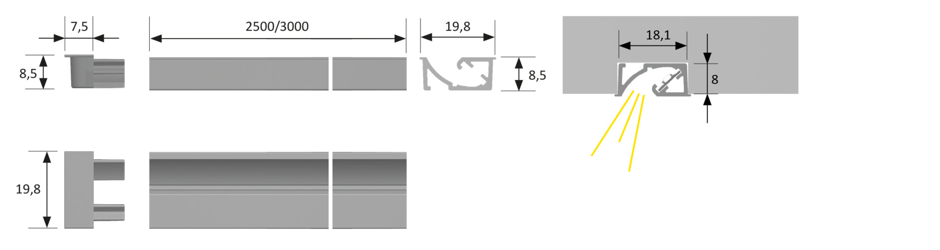 | Ausführung | 3000 mm, Alu (10er Set) |