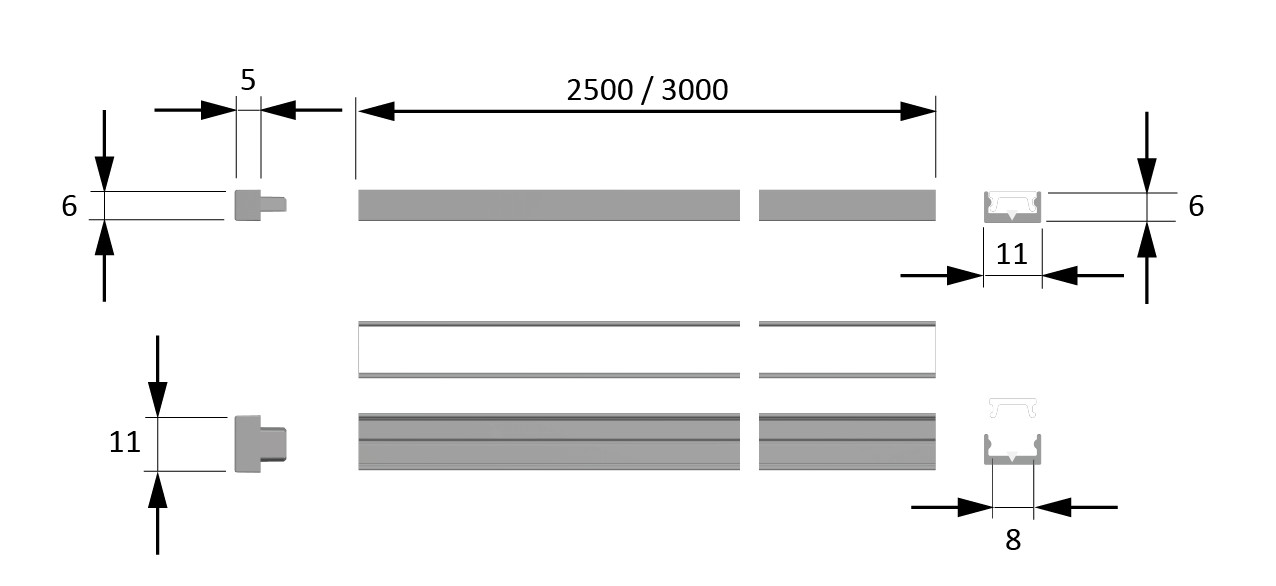 Ausführung 2500 mm, Alu/ Opal (10er Set)