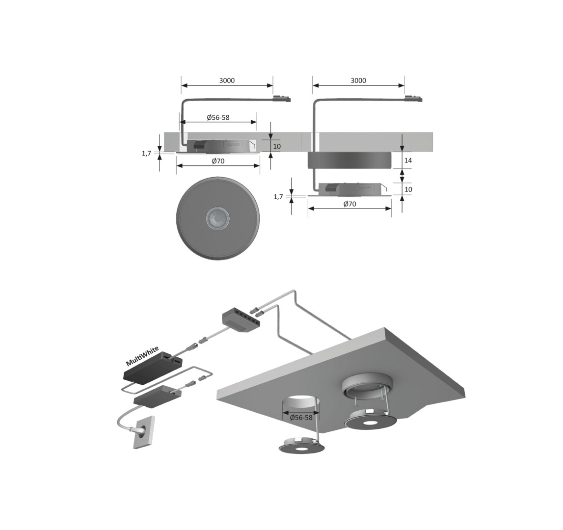• Einbauleuchte für 58 mm Einbaudurchmesser