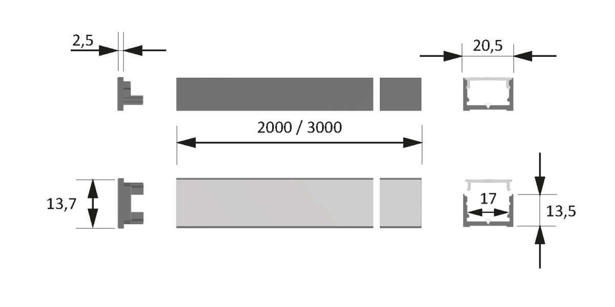 HALEMEIER Ein- Aufbauprofil ChannelLine D2 Schwarz / Opal 3000 mm