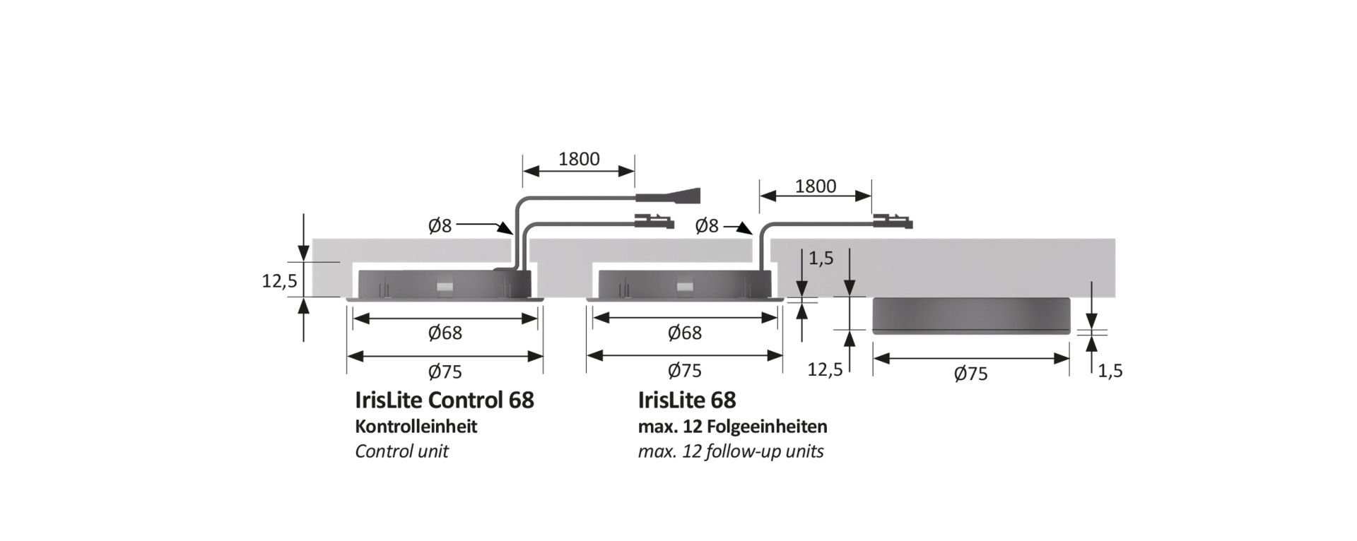 - Eine IrisLite Control kann bis zu 12 weitere IrisLite steuern