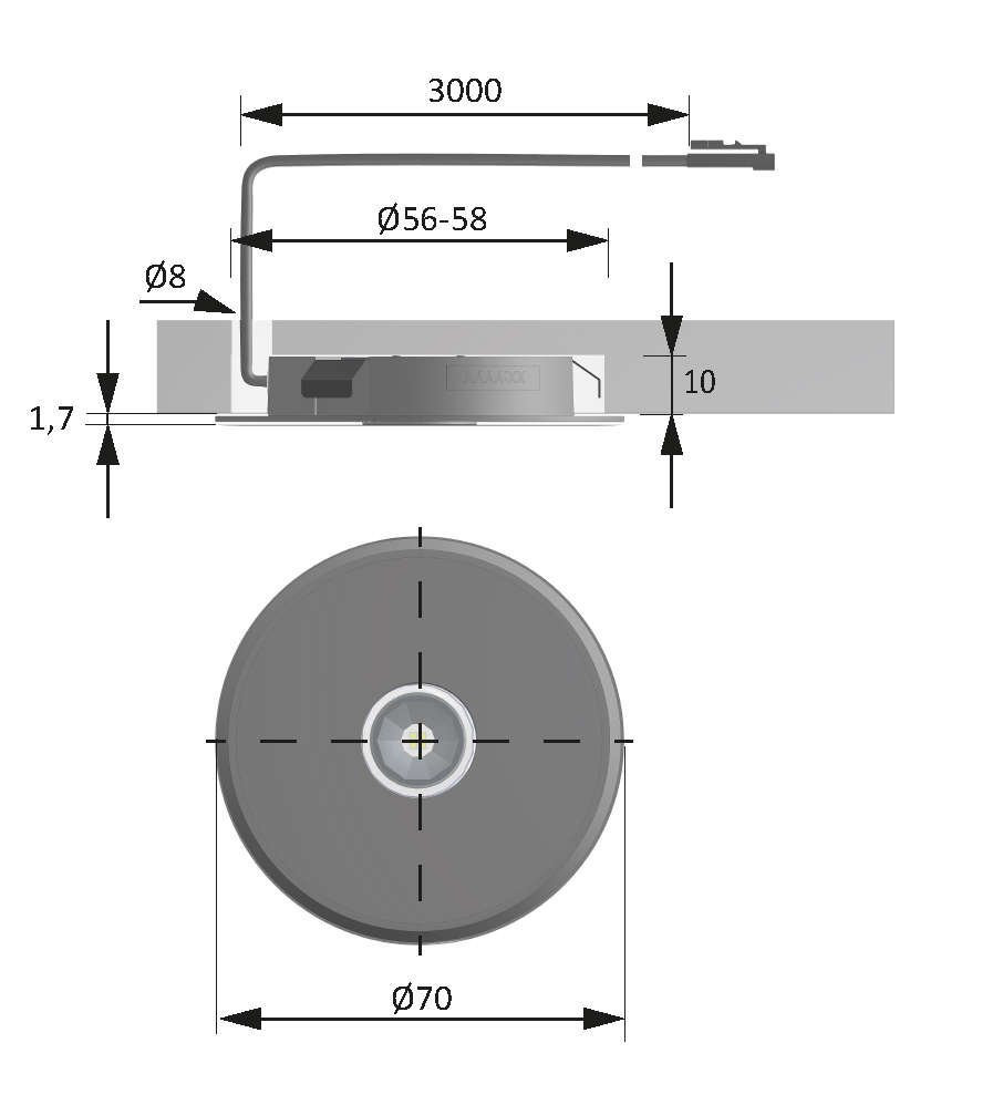 - Einbauleuchte für 58 mm Einbaudurchmesser