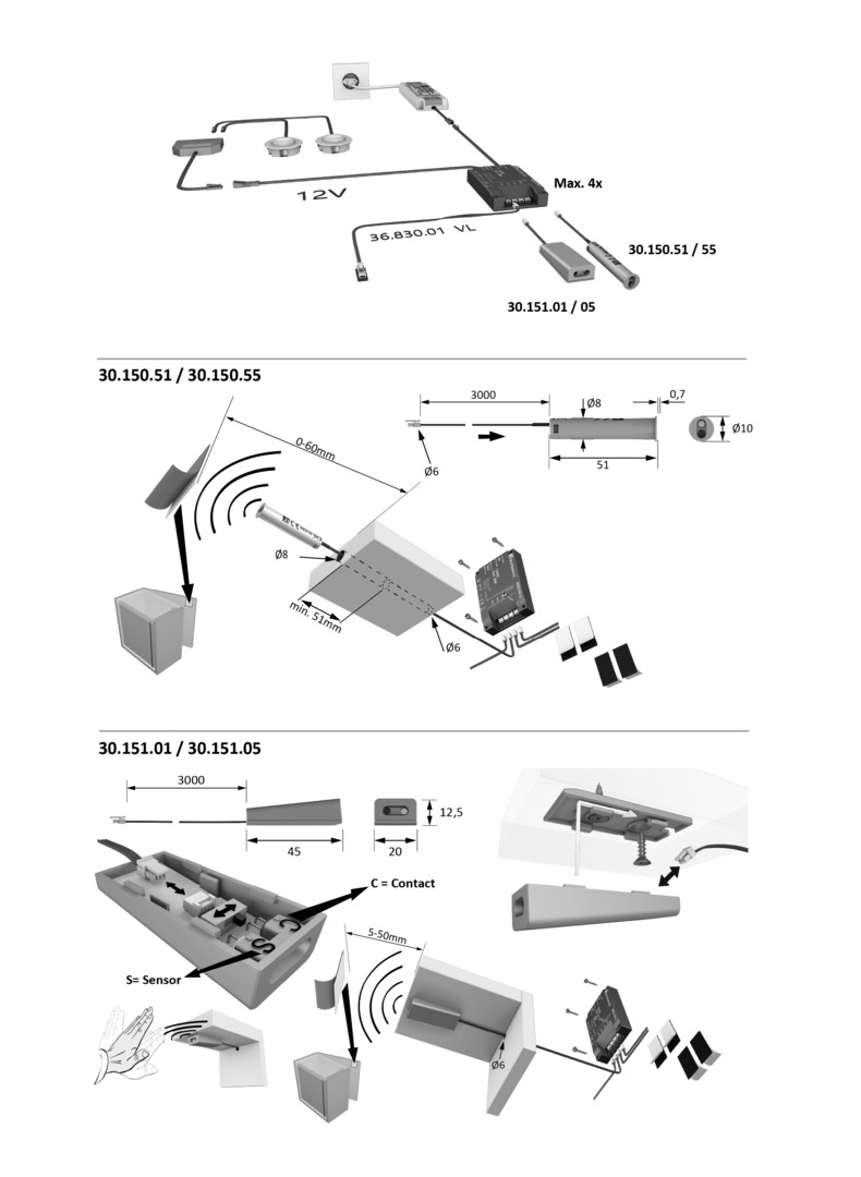 HALEMEIER MultiSwitch IR Einbohrsensor 8mm Türkontaktschalter LTG 3m Alu Optik