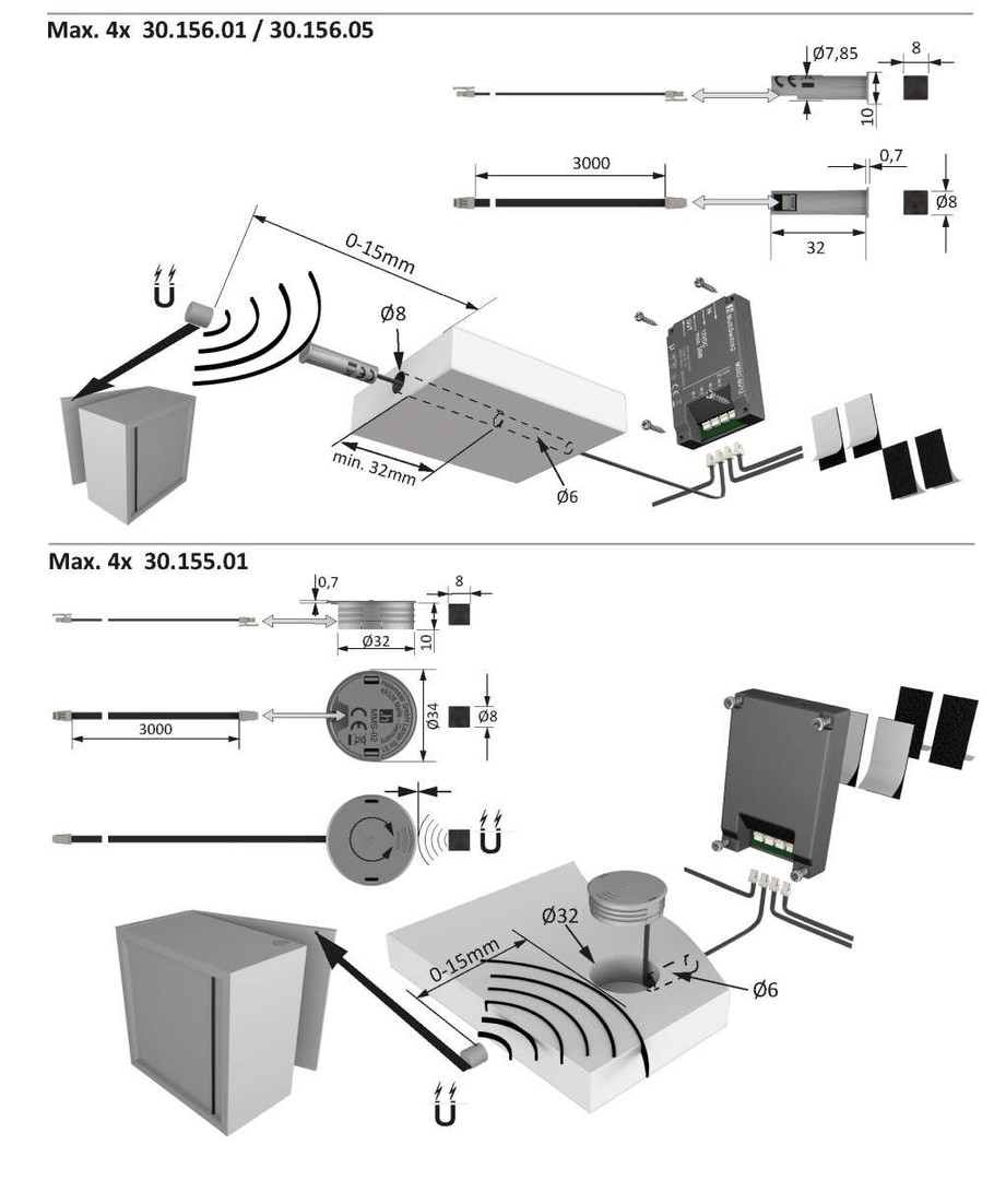 HALEMEIER MultiSwitch Magnet Infrarotsensor zum Einbohren schwarz
