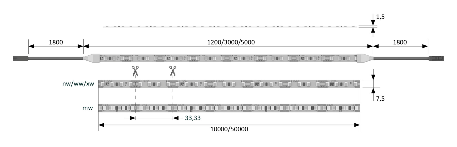 HALEMEIER Versa Inside 1200 12VDC xw 120LED/m L=3m 8W/m LTG 2x1,8m M1