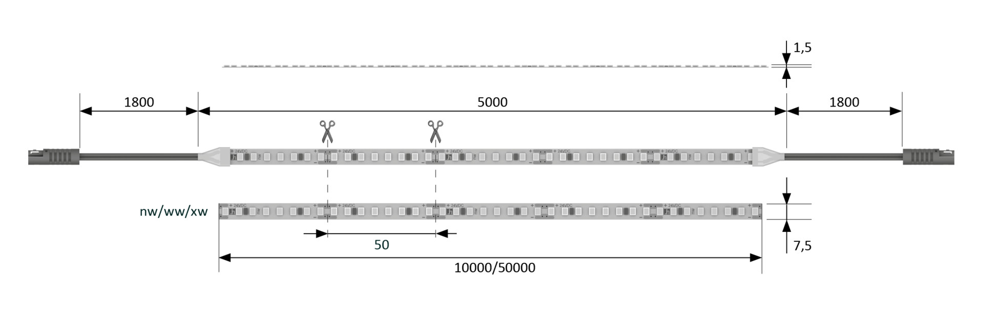 | Ausführung | 50000 mm 160LED/m L=50m 14W/m Konfektionsrolle |