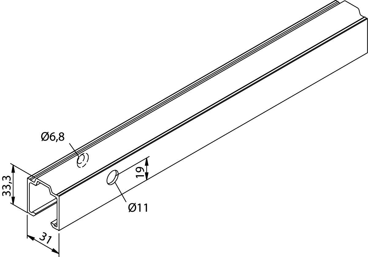HELM 60 Laufschiene für Wandmontage 250cm für Türbreiten:111-130cm