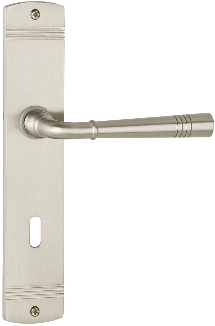 HERMAT Z.T. Langschild-Drücker-Garnitur "1174 Lyon" - Edelstahl matt vernickelt - Bad / WC