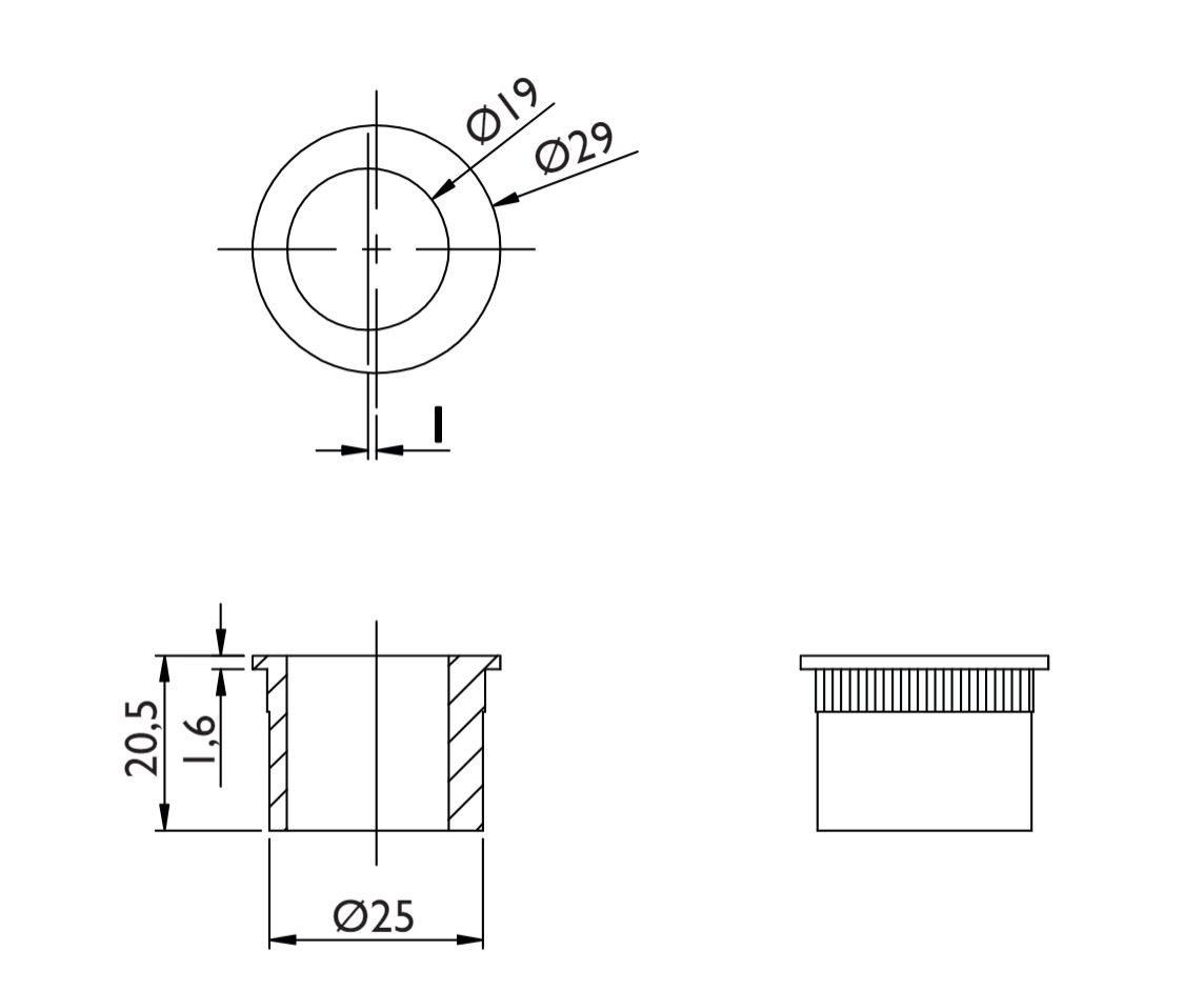 Die Ausfräsung muss ein Mindestfräsdurchmesser von 25 mm und Mindesttiefe von 21 mm vorweisen. Die Muschel kommt in der Ausführung ohne Anschraublöcher. Weitere Maße bitte der Zeichnung entnehmen.