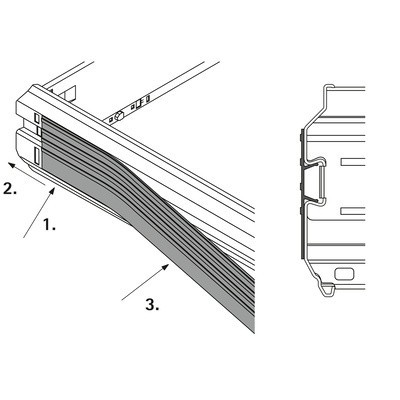 - Nicht in Verbindung mit breitenverstellbarem Hängeregistraturrahmen einsetzbar