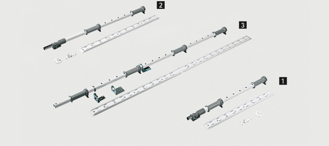 - 1 Stück Montageleiste (2 Stück bei Achse 1265 mm)