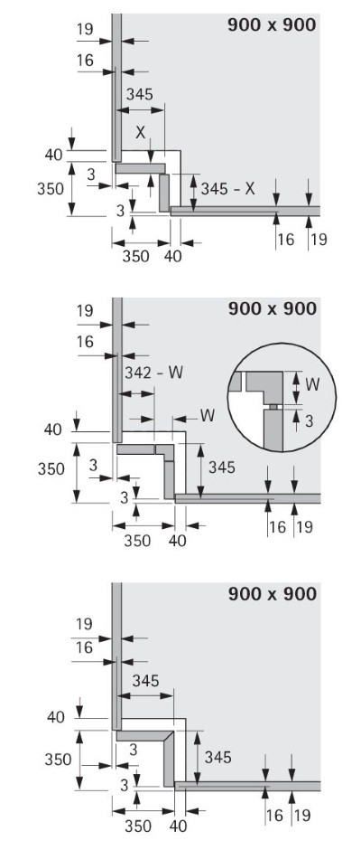 - ø 810 mm (für Korpus 900 x 900) bzw. ø 710 mm (für Korpus 800 x 800)