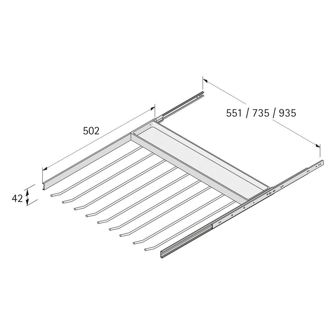 HETTICH Ausziehbarer Hosenhalter, 1000 mm, zwischen Korpusseiten, silber