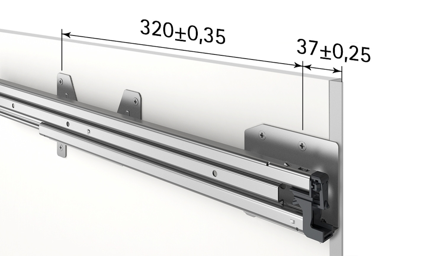 - Abstand Befestigungspunkte Vorderkante Korpus: 37 / 320 mm