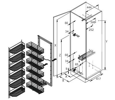 - Schwenkauszug für Hochschränke inklusive Dämpfung Silent System