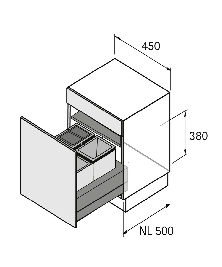 HETTICH Base f. AT Abfallsystem NL500mm KB450mm 20l+2x10l anthrazit